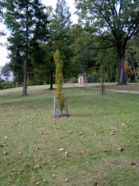 Ambroň západní - Liquidambar styraciflua po přemístění do horního parku, 2005