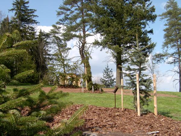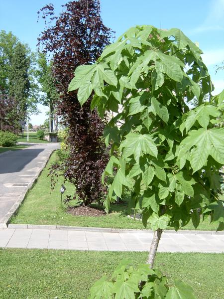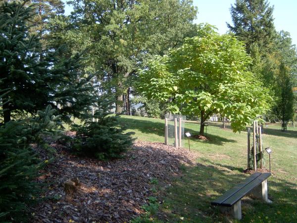 Katalpa trubačovitá - Catalpa bignonioides a skupina jedlí v horním parku, 2005
