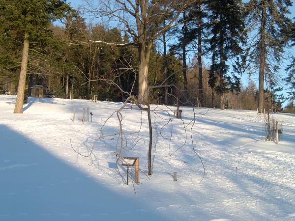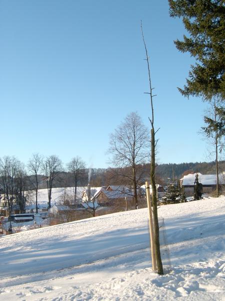 Jinan dvoulaločný - Ginkgo biloba vzrostlý stromek po přesazení do horního parku, zima 2006