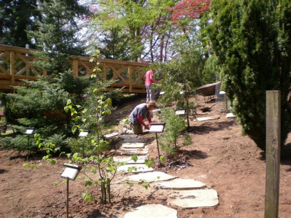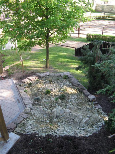 Skupina čarověníků v lokalitě skalky v době založení skalky pod lávkou u zámecké budovy v roce 2008: