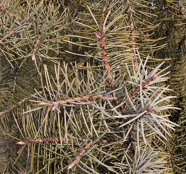 Ke znečištěnému ovzduší odolnějším druhem, který se může dožít stáří 400 až 600 let, je smrk pichlavý (Picea pungens), původem ze Severní Ameriky (objevený r.1862), dorůstající v domovině až 40 m výšky (u nás 30 m). Příčina zvýšené odolnosti tohoto smrku spočívá v silném ojínění jehlic tlustou vrstvou vosku, která pomáhá mírnit účinky klimaticky náročných podmínek nejen ve Skalistých horách, kde je tento smrk domovem. Jehlice vyrůstající kolem dokola větviček jsoutuhé, pichlavé, pravoúhle odstávající od větvičky (rozměry 20-30 x 1,5 mm). Šištice (5-10 x 2-3 cm), složené ze světlých, tenkých, zvlněných plodní šupin, vytrvávají na stromě do podzimu příštího roku. Zbarvení tohoto smrku je matně zelené až modrošedé, nikoliv stříbrné, jak se mnoho lidí nesprávně domnívá. Stříbřitě zbarvený je jeho vyhledávaný kultivar ´Argentea´, tzv. „stříbrný smrk“, více do modra je pak zbarven kultivar ´Glauca´, oba zastoupeny ve zdejším parku.