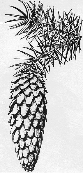 K velmi malebným druhům patří vzácný smrk Brewerův (Picea breweriana), původem ze Severní Ameriky, který svou širší kuželovitou korunou se záclonovitě splývajícími větvičkami, které jsou málo větvené, připomíná smuteční vrbu. Tento pomalu rostoucí druh u nás v 50-ti letech dosahuje 8-10 m výšky. Jeho poměrně dlouhé (20-30 x 1,5 mm), odstávající jehlice jsou ploché (podobně jako u smrku omoriky) a tupé.