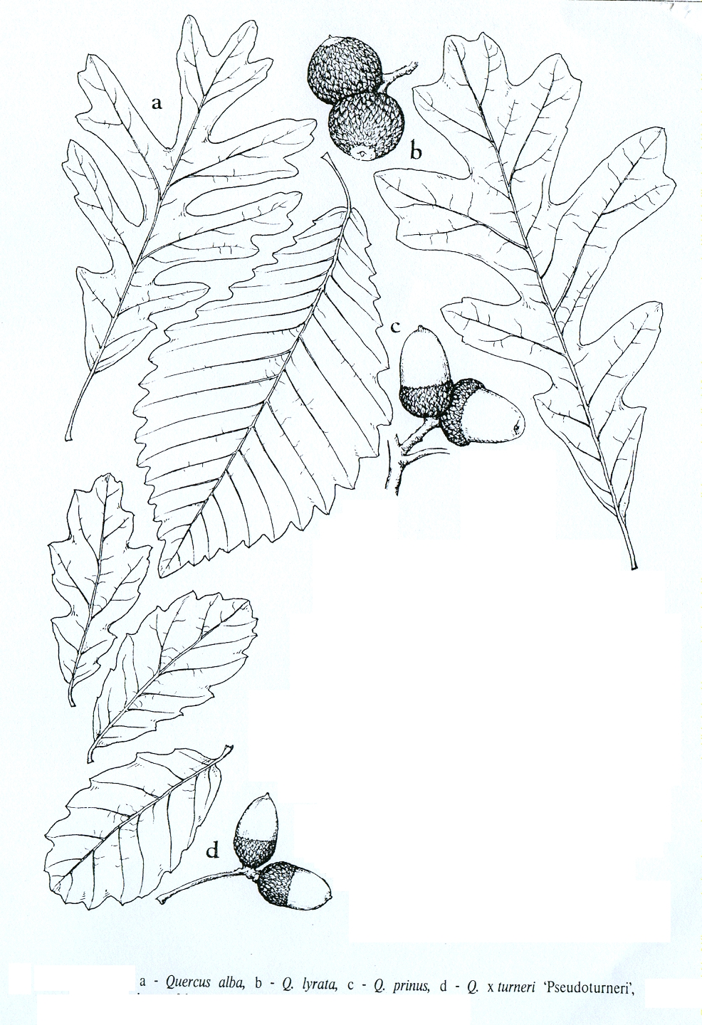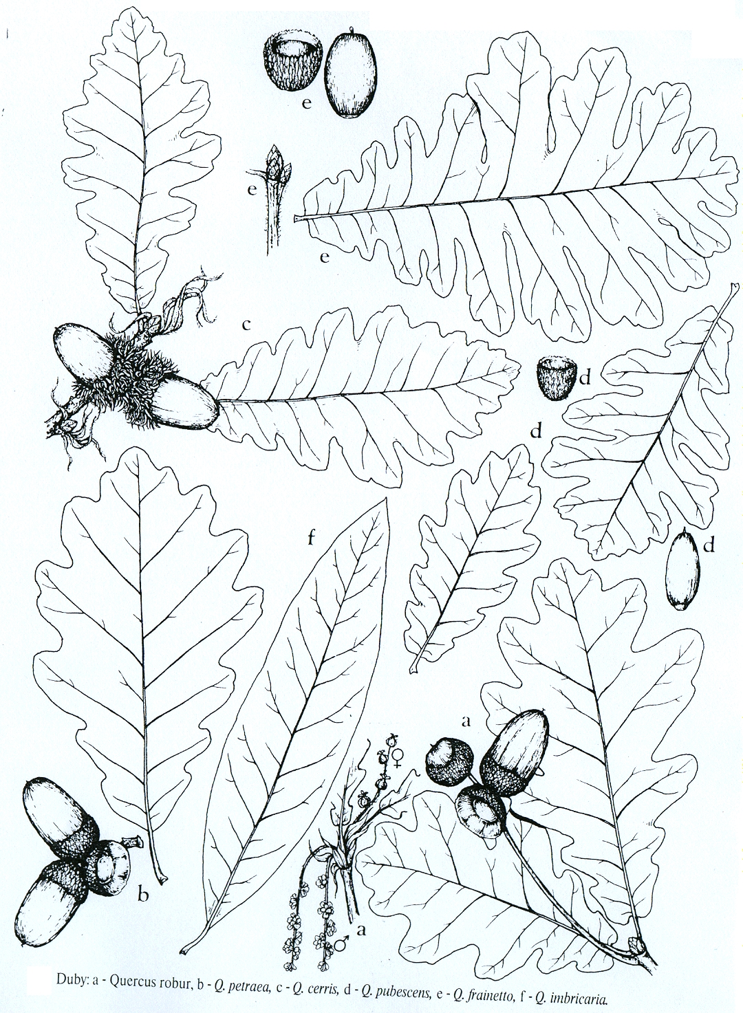 duby s listy zaobleně laločnatými (např. Q. dentata, Q. macrocarpa),