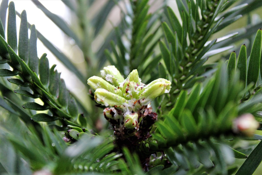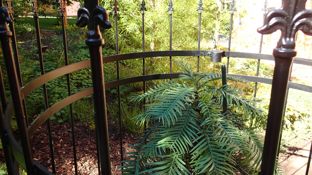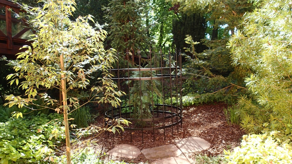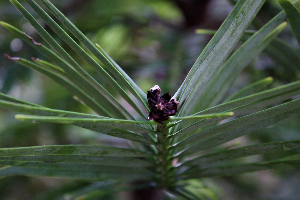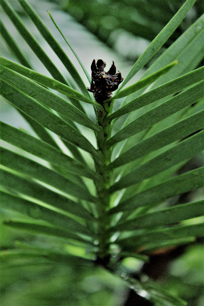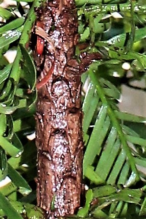 Wollemia nobilis - wollemie vznešená v Arboretu Žampach v roce 2017 - zimoviště: