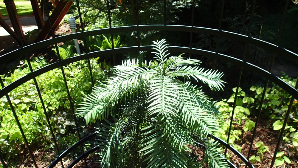 Wollemia nobilis - wollemie vznešená v Arboretu Žampach v roce 2017 - venkovní stanoviště: