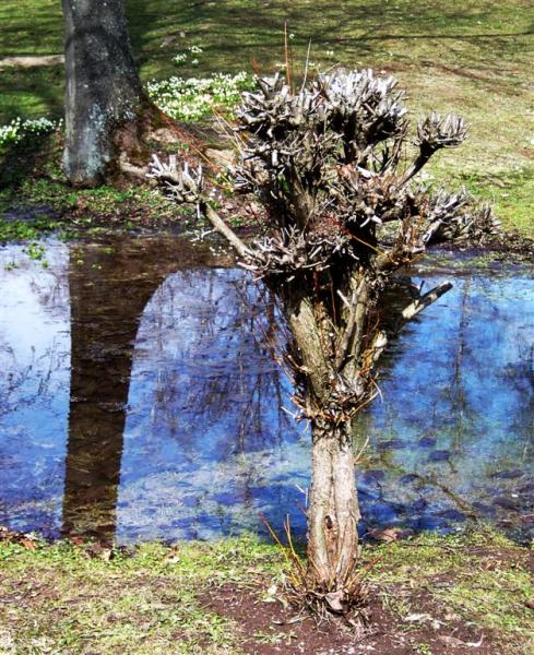 Za jednu z nejkrásnějších vrb lze označit vrbu lesklou (Salix lucida), pocházející ze Severní Ameriky, která ve zdejším parku roste v lokalitě „u rybníčku“. Vytváří většinou keř široce vystoupavého vzrůstu, vzdušně a lehce stavěný, někdy až strom se široce kulovitou korunou o výšce do 5 m. Výrazné jsou jak její 3 - 7 cm dlouhé, zlatožluté jehnědy, které vyrůstají až na olistěných větvičkách, tak celou sezónu její 6 - 14 cm dlouhé, oboustranně lesklé, nápadně špičaté listy. Velmi krásné jsou také převislé větvičky této vrby, které jsou tmavě zbarvené s bílým ojíněním.