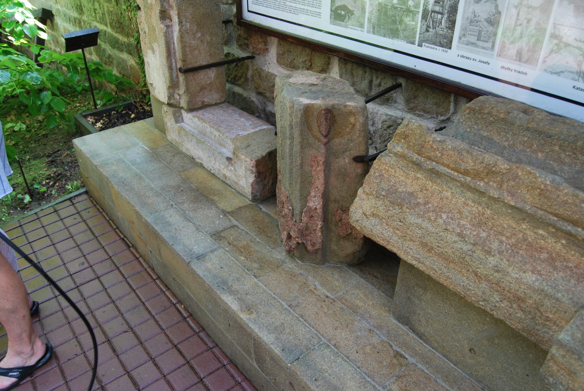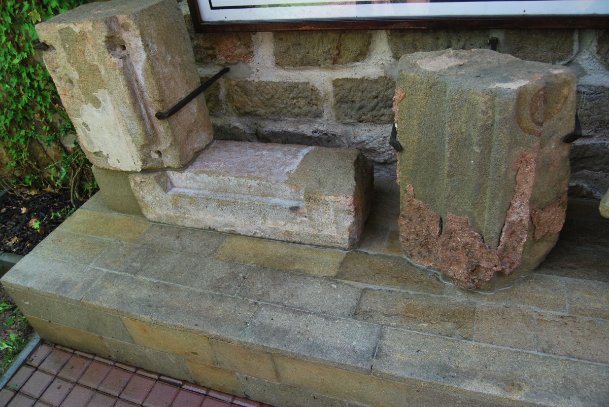 Architektonické články (segmenty) umístěné v expozici lapidária: