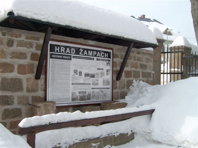 Lapidárium je expozicí nálezů objevených při archeologickém průzkumu na hradu Žampach se základními informacemi o historii tohoto hradu. Obsahuje materiály z dokumentace víceletých archeologických a průzkumných prací na hradu Žampach - Východočeského muzea Pardubice - archeolog - Mgr.Cejpová Miroslava. V této veřejně přístupné expozici si můžete prohlédnout např. fotodokumentaci prací, plán hradu s popisem jednotlivých částí a určením místa jednotlivých archeologických nálezů, které jsou zde vystaveny. Dále kopie unikátních historických materiálů - kresby a obrázky dokumentující např. stav zříceniny hradu kolem r.1880, dřevěnou rozhlednu na hradu v r. 1902 a v r. 1939. Opravy dřevěné lávky na hradu v r. 1940 a další.