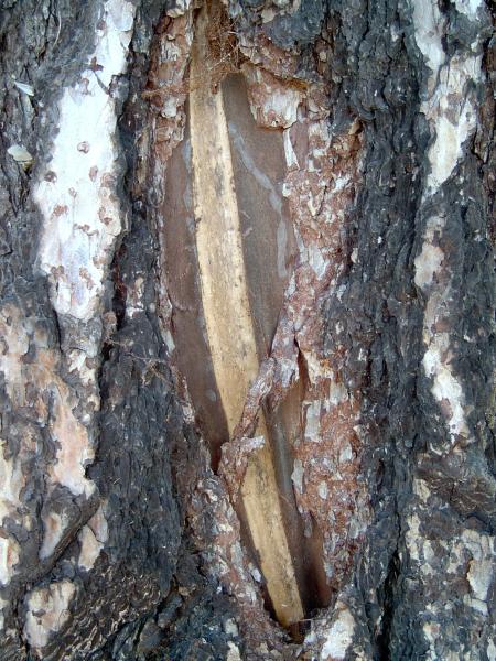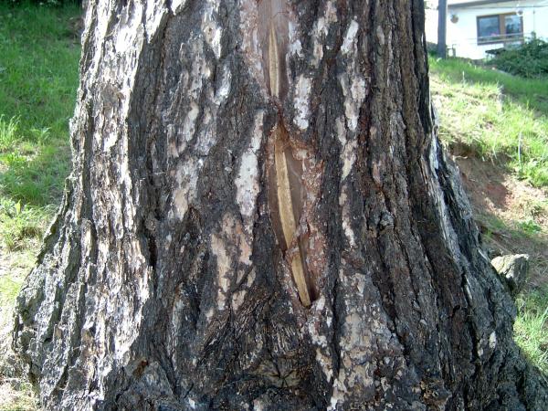 Modřín opadavý Larix decidua - uhynulý po zásahu bleskem 2006