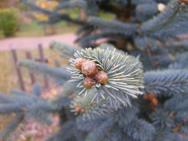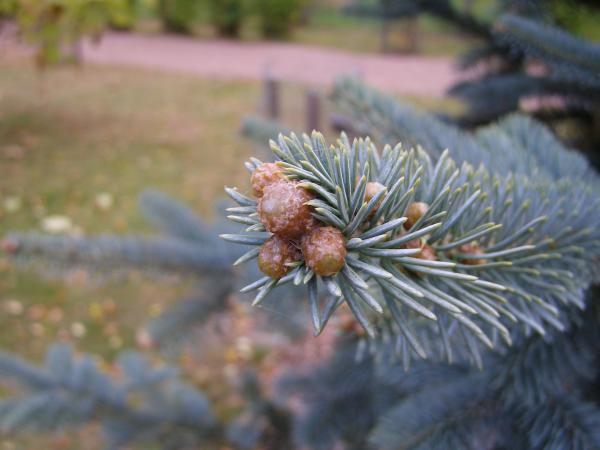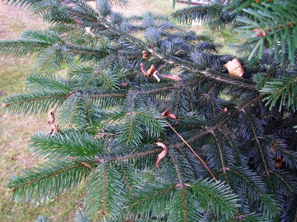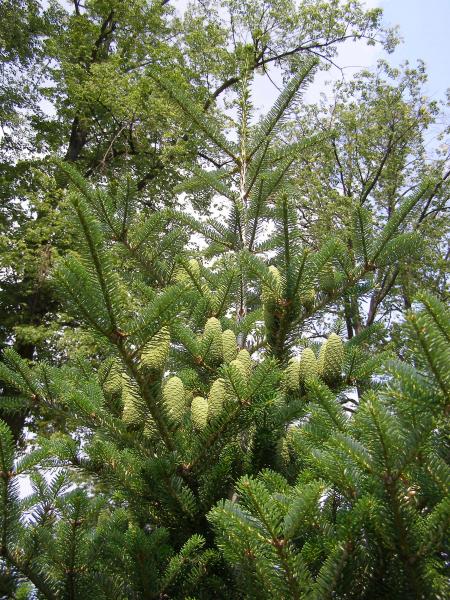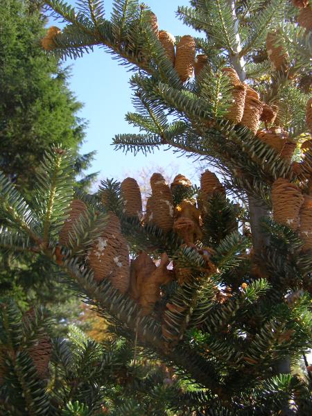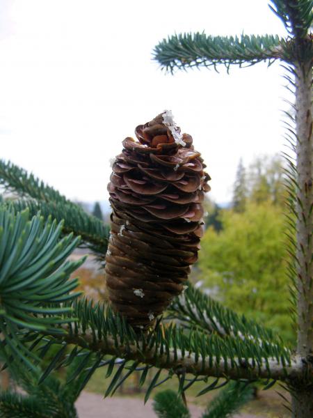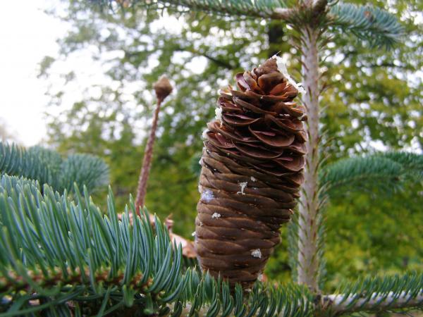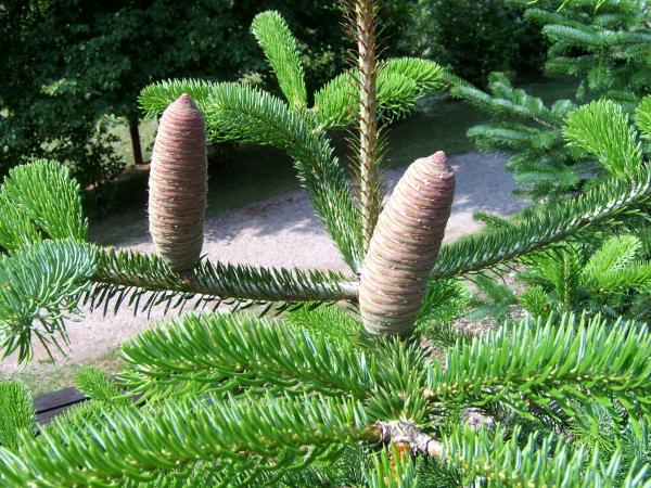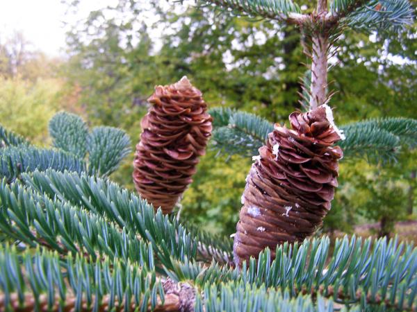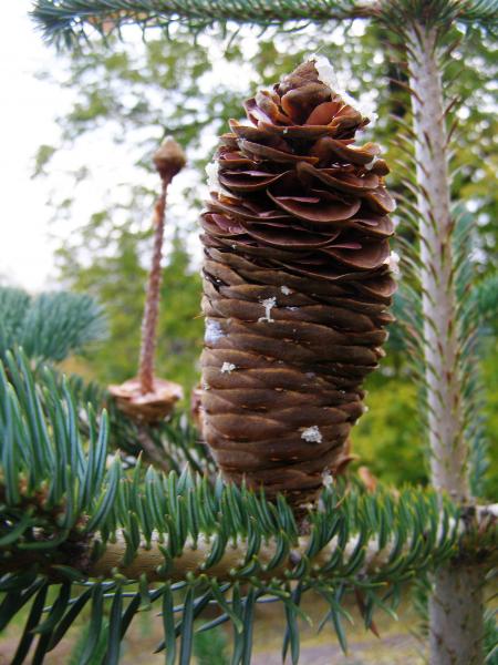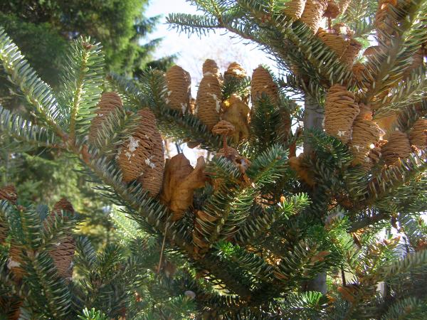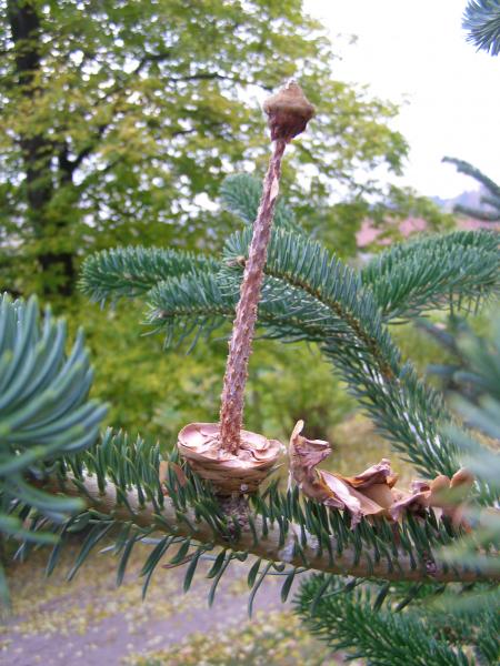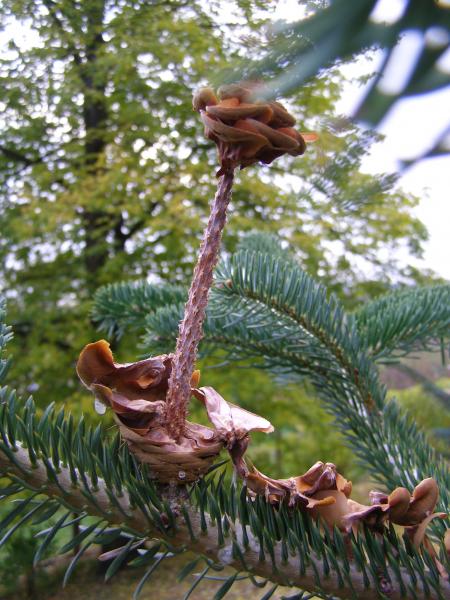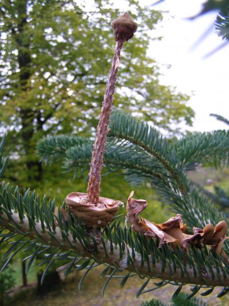 Jedle stříbrná (Abies procera) - archivní fotografie z r. 1995 - šištice z vrcholku stromu spadlé po zásahu blesem