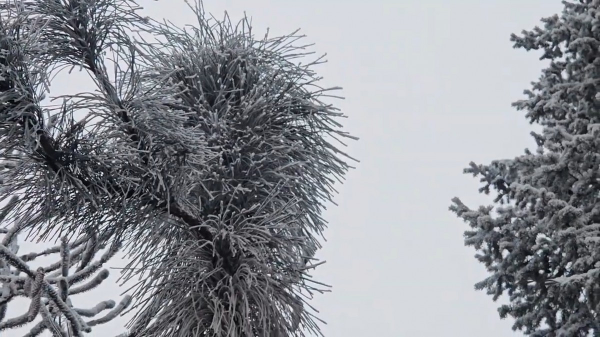 douglaska tisolistá s čarověníkem v koruně stromu