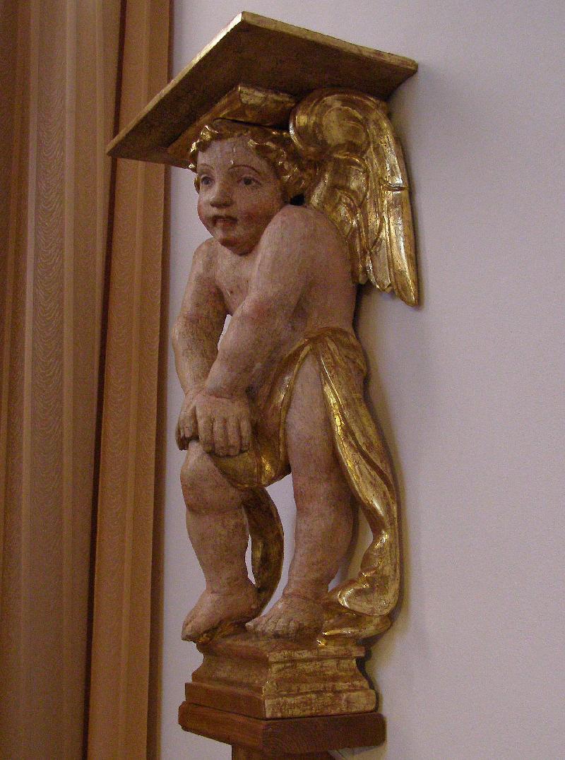 Dvě dřevěné polychromované barokní sošky andílků byly situovány do podhledu na oltář po obou stranách menzy. Postavy tvoří protějšky a jsou z první pol. 18. století (restaurovány r. 2000).