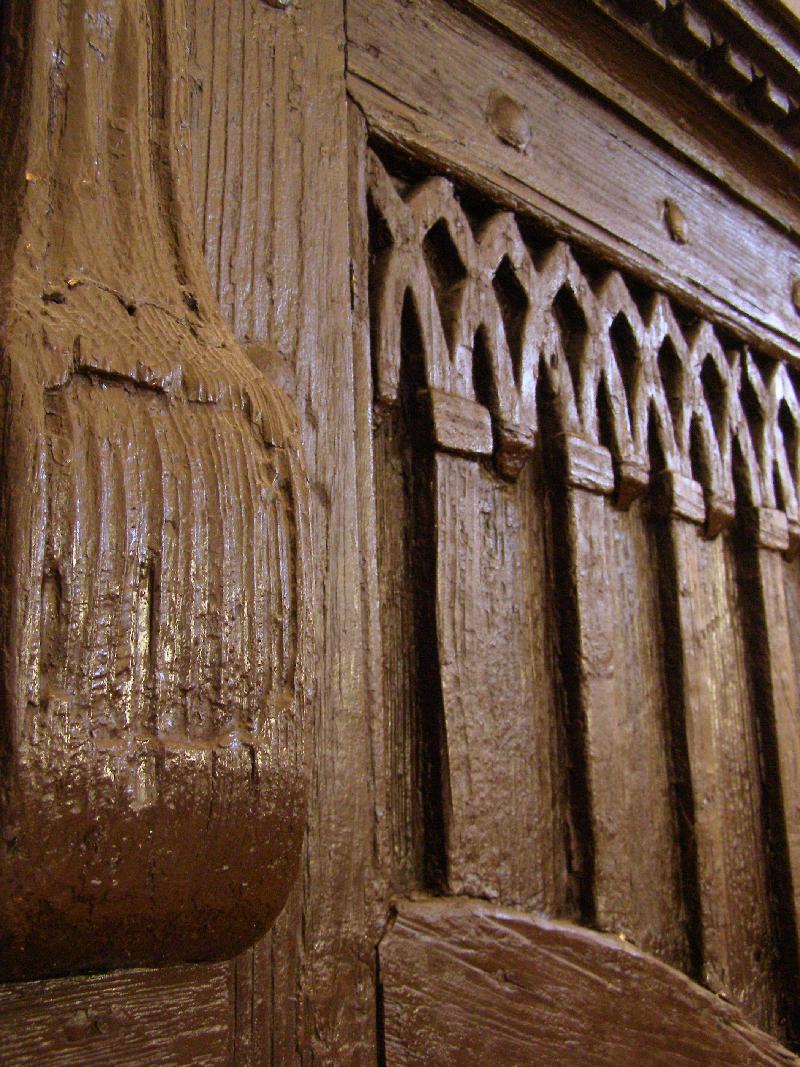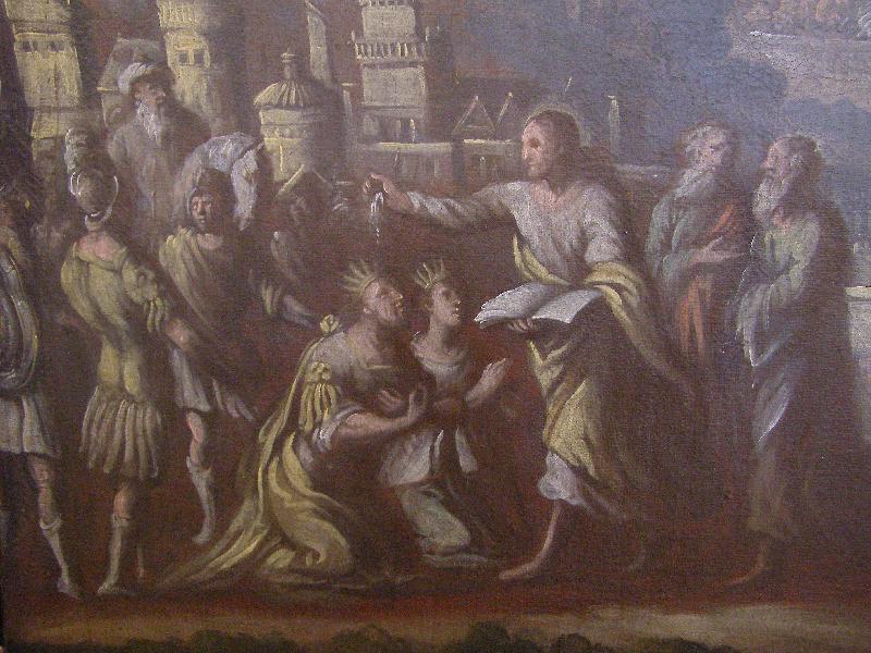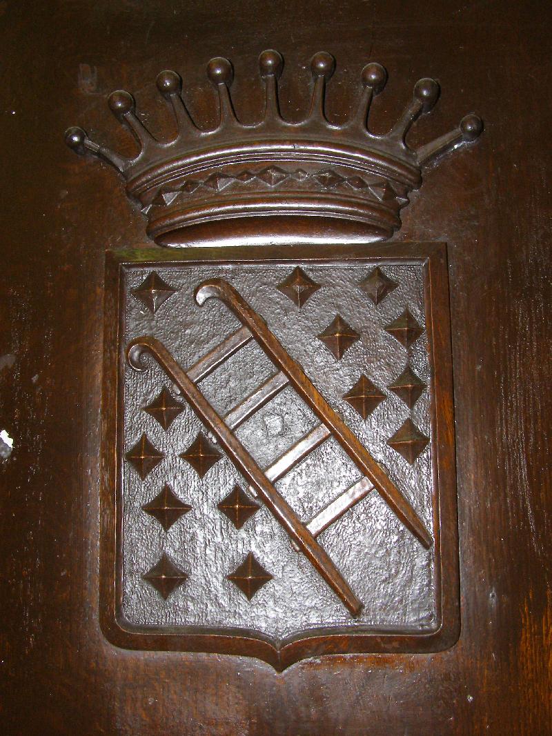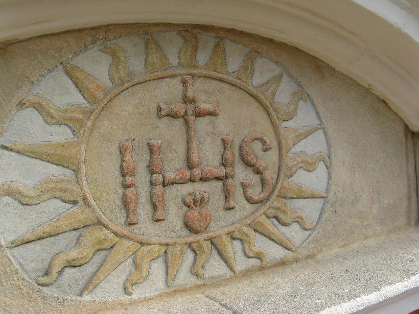 Dřevěná vyřezávaná plastika „... A ZDE ZLATÝ ŘETĚZ…“ - PISA, KVĚTEN 1355, Autor: H. T. František Radvan, rok 2003 – 2008 lípa, 150 x 201 x 20 cm, přimořeno. Odhaleno 23. srpna 2008.