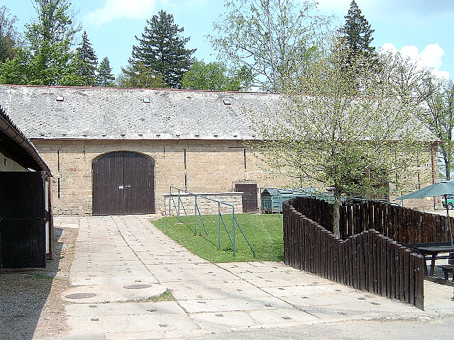 Prostorná stodola byla součástí zámeckého hospodářství manželů Anny Gustavy a Františka Lützowových na Žampachu (1884 - 1932). Je vystavěna z pískovcového kamene pocházejícího ze zdí zpustlého hradu na vedlejším homolovitém návrší (nyní jsou zbytky gotického hradu z přelomu 13. a 14. století po provedeném archeologickém průzkumu zakonzervovány a chráněny jako kulturní památka).